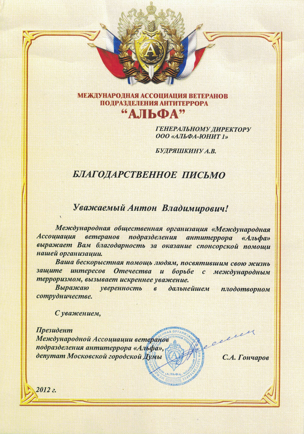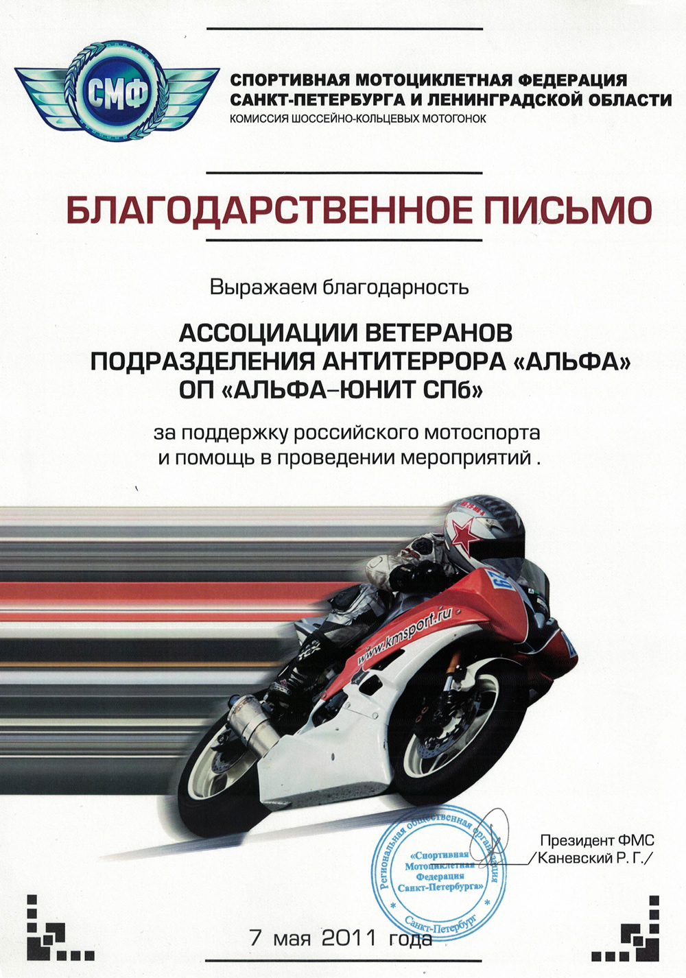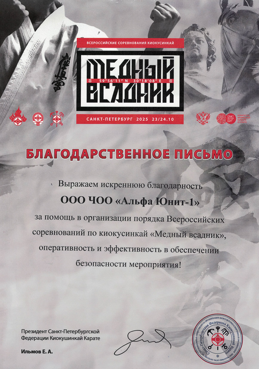 От междунар ассоц ветеранов подразд антитеррора От ОВО Адм рна СПб От ОМОН (на транспорте) От спортивной мотоциклетной федерации От треста №68 От федерации киокушинкай От ЭСТА КОНСТРАКШЕН